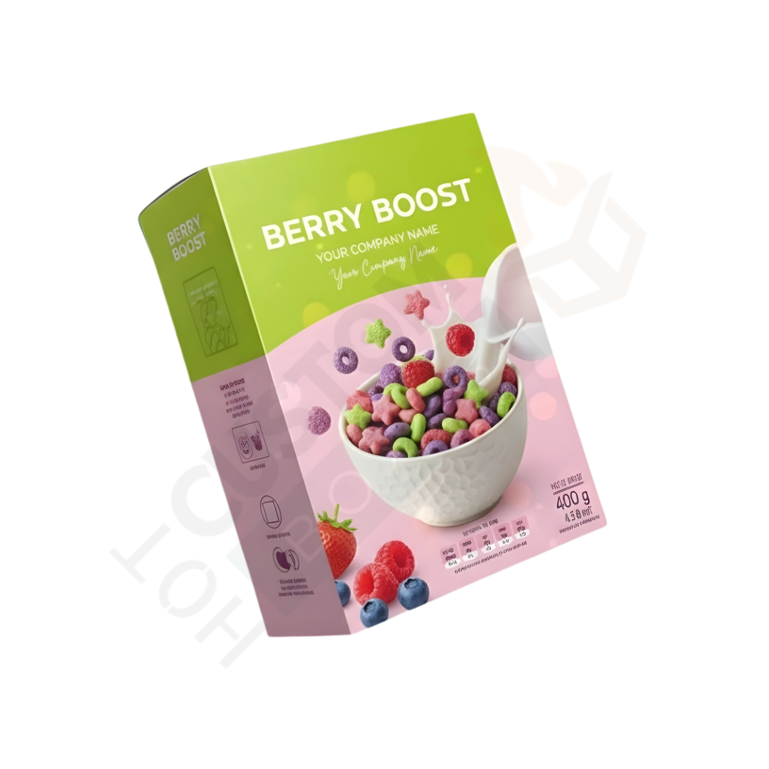 Custom cereal boxes use food-grade materials and safe inks. They meet industry standards and regulations. The boxes allow space for: