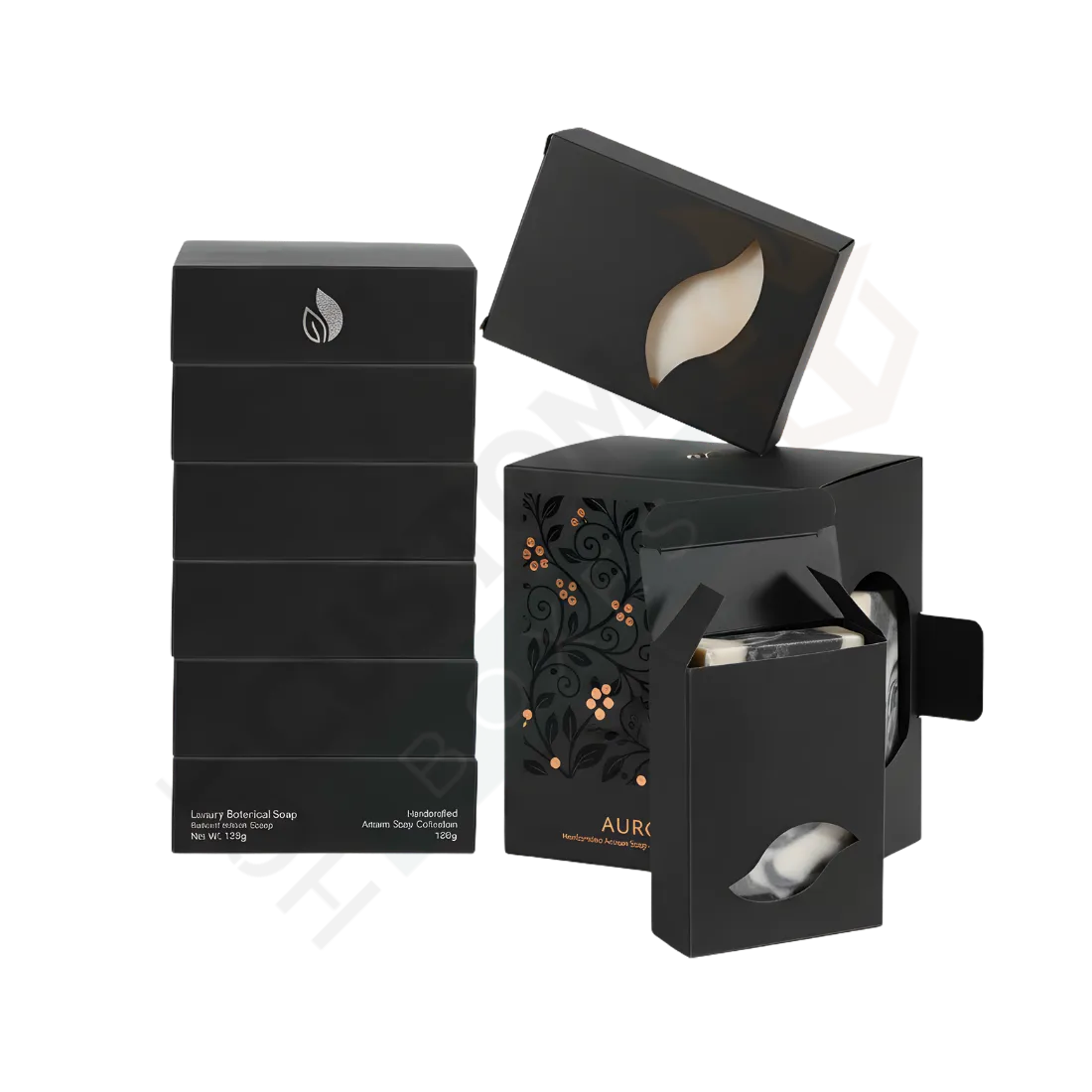 Design options include tuck-end boxes, sleeves, window boxes, drawer styles, and flip-top designs. Window cut-outs let customers see the soap. This improves transparency and trust.